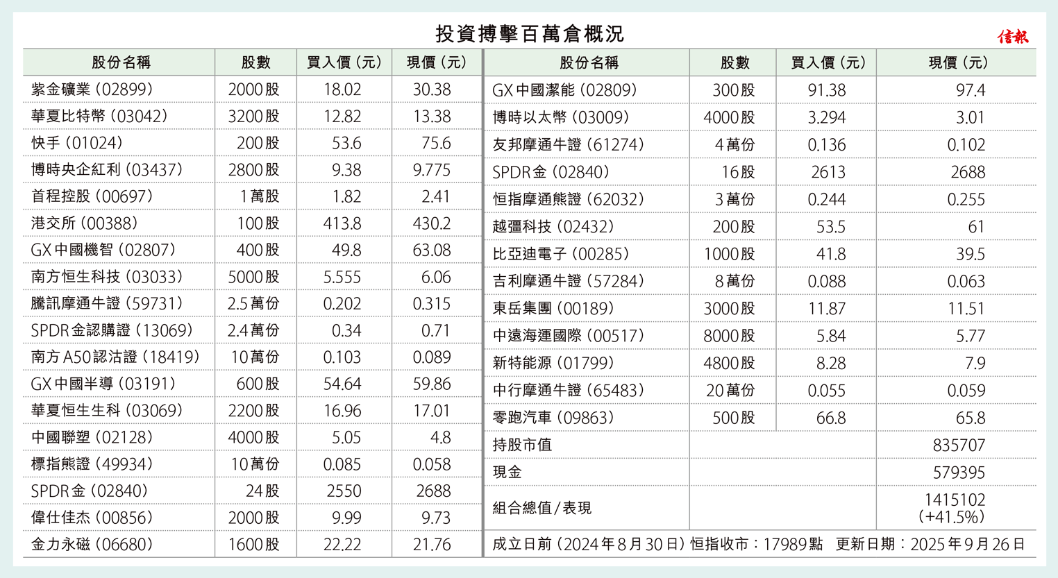 港股昨日雖然一度倒升,但最終仍要挫逾百點收市,至於「百萬倉」回報則進賬0.4個百分點,創出組合成立以來的回報新 ...全文