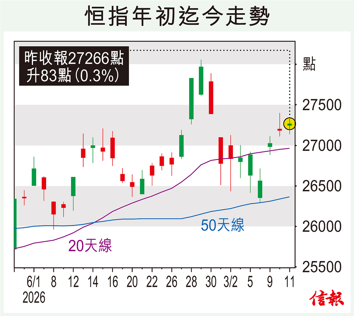 港股昨波幅縮至不足200點,埋單僅升83點,報27266點,續企穩各平均線;恒生科技指數跑贏,進賬48點或0. ...全文
