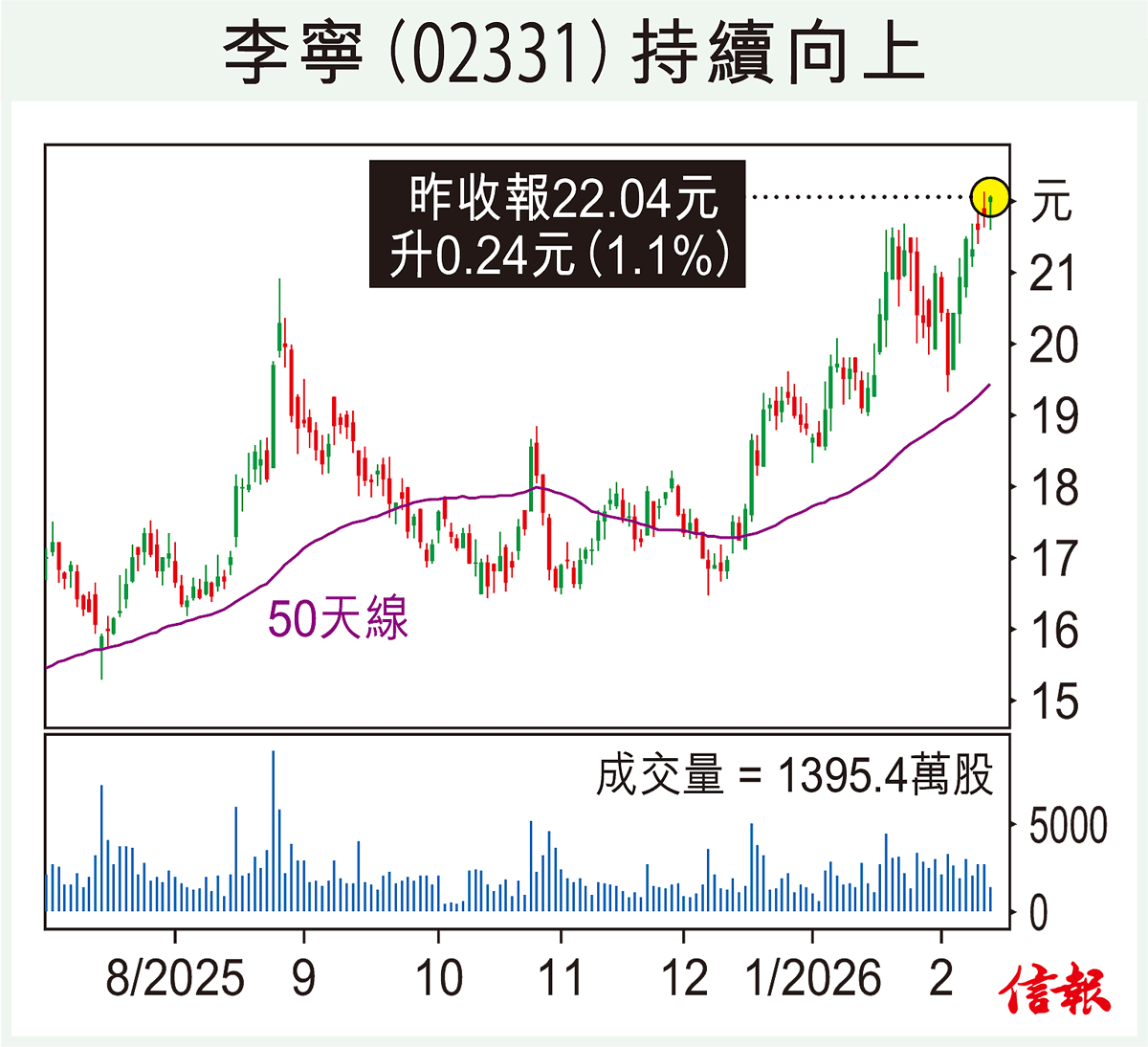 內地大力催谷內需,消費類股份走勢向好,其中運動服飾龍頭李寧(02331)最近兩個多月股價穩步上揚。過去3年該公 ...全文