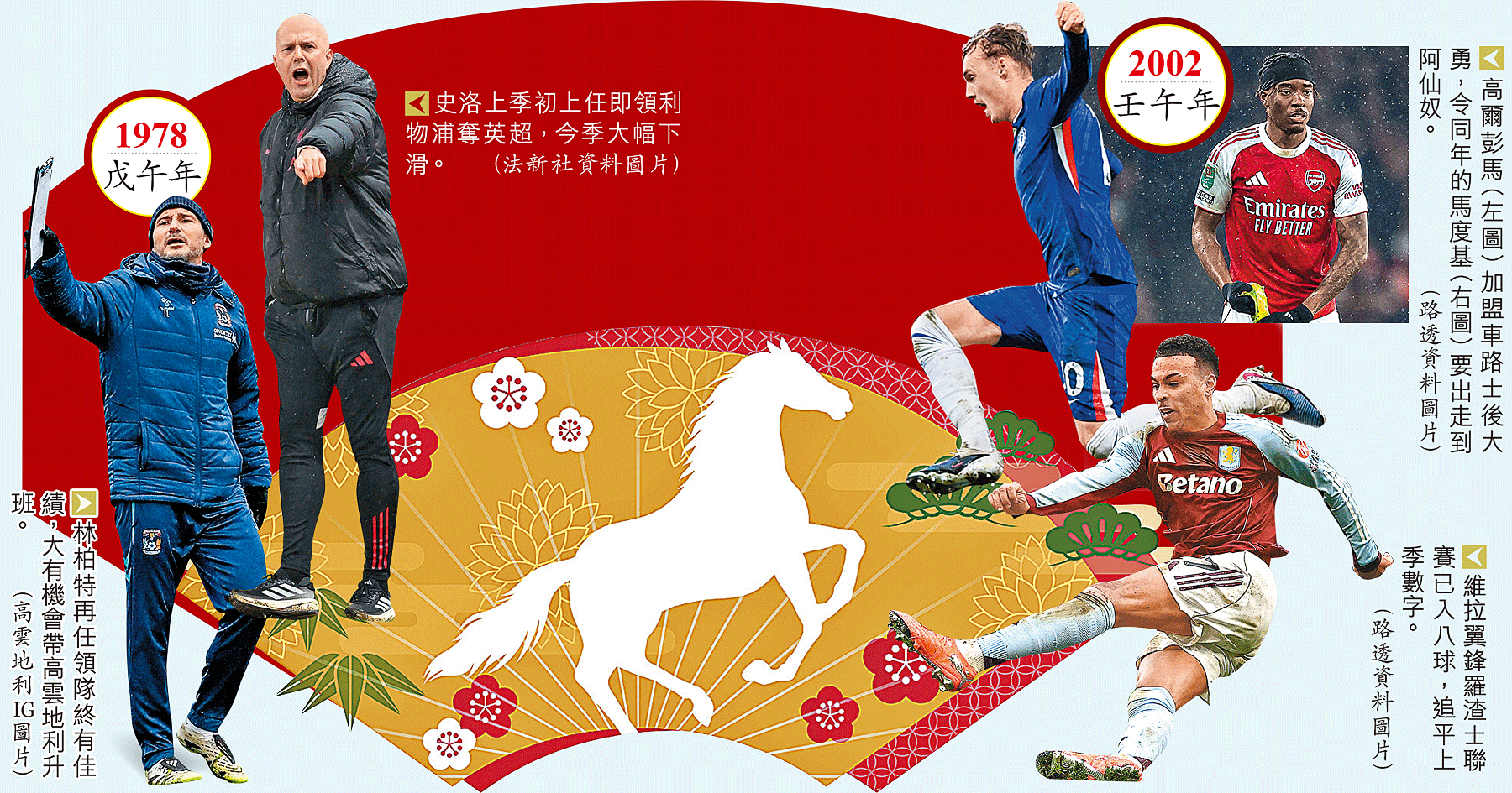 踏入馬年,國際球壇上生肖屬馬的兵將,今年犯太歲,惟看來同人不同命,高爾彭馬(Cole Palmer)和摩根羅渣 ...全文