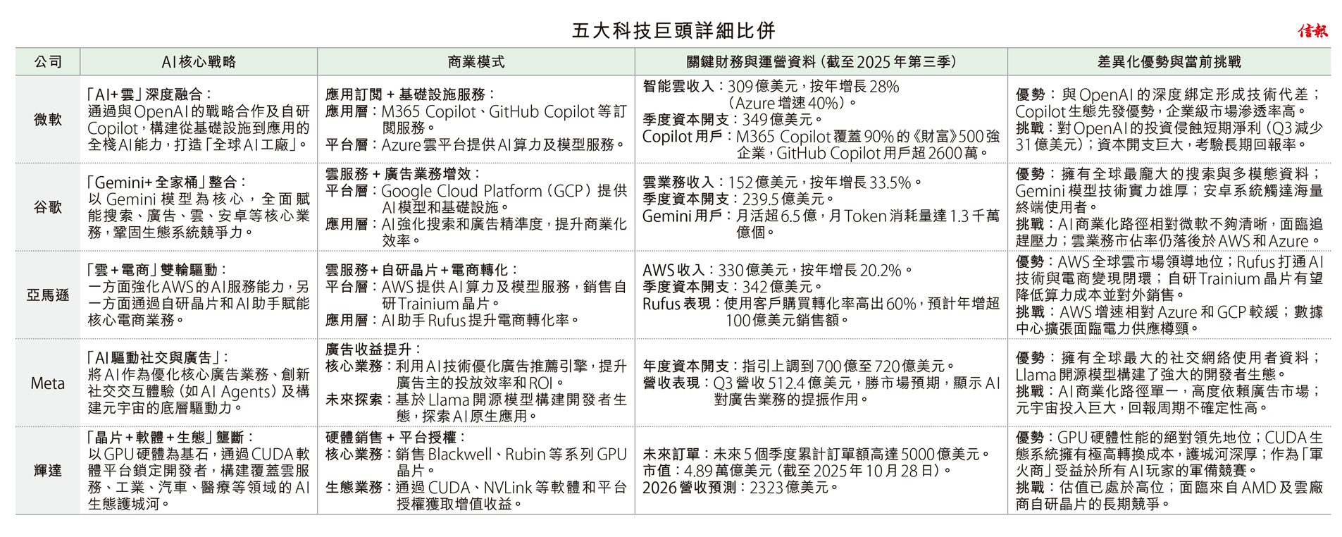 當前,全球五大科技巨頭(微軟、谷歌、亞馬遜、Meta、輝達)正圍繞人工智能(AI)展開激烈角逐,其戰略布局與商 ...全文
