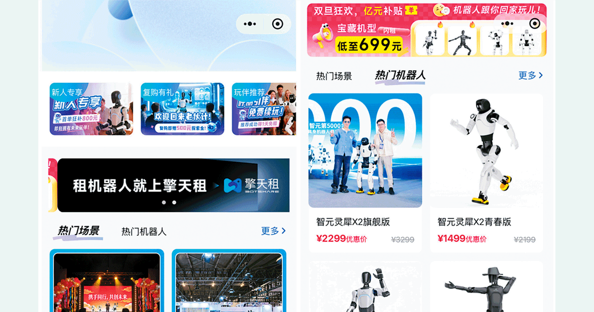 ... 從安防巡邏500元(人民幣.下同)入場,到體育電競近10萬元不等。 「擎天租」平台多品牌供租賃 智元AgiBo ...全文