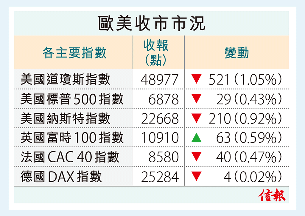 ... 0.59%或63點;德國DAX指數收報25284點,微跌0.02%或4點;法國CAC 40指數收報8580點, ...全文