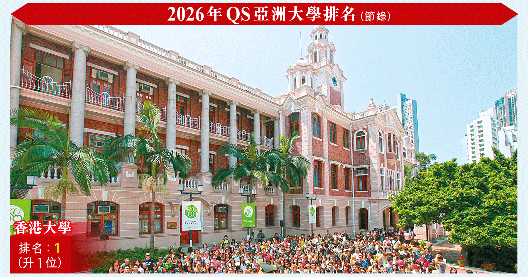 國際高等教育研究機構Quacquarelli Symonds(QS)昨公布「2026年亞洲大學排名」,香港大學 ...全文