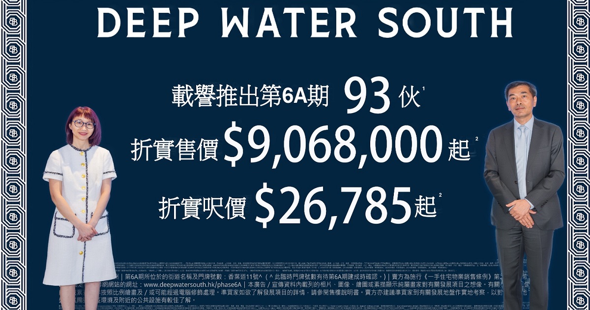 會德豐地產與港鐵(00066)合作的港島南岸第6A期DEEP WATER SOUTH,最快24小時內公布首張價 ...全文