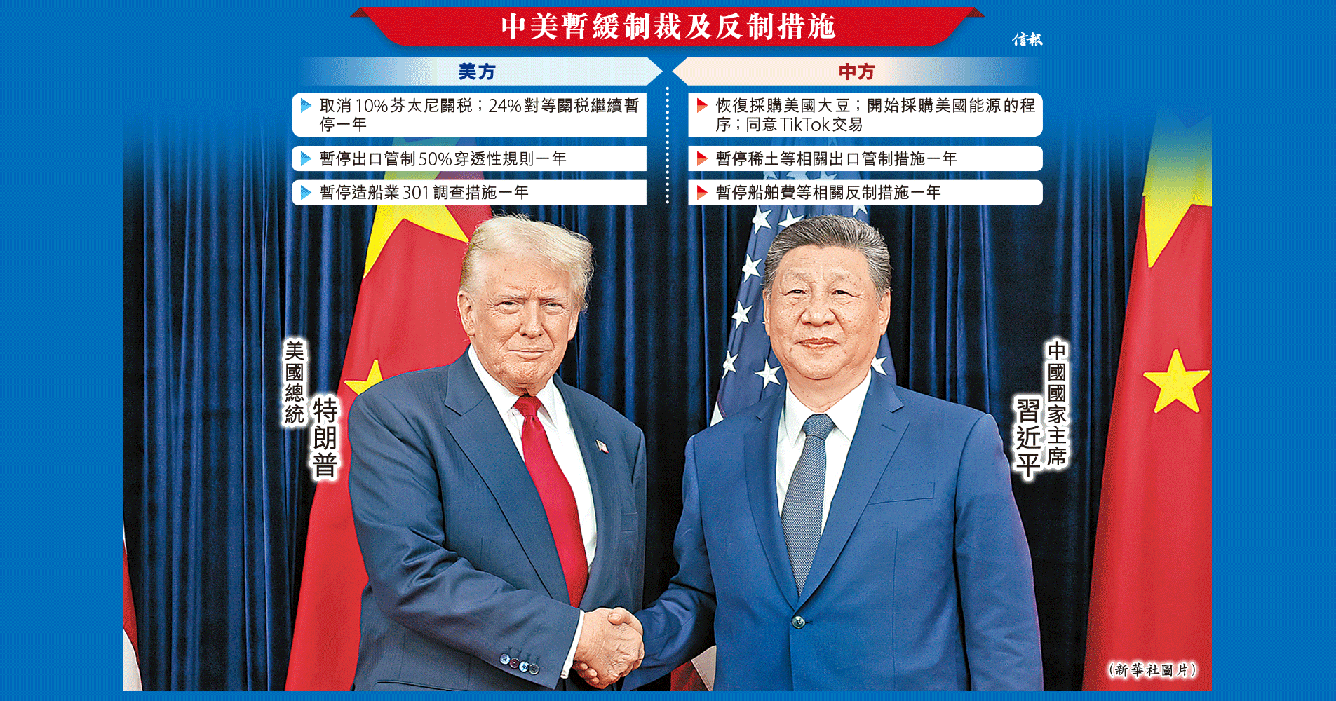 1.習特會丨美取消10%芬太尼關稅 對華商品24%對等關稅續停1年 中美元首在南韓會晤取得進展,美方將取消針對 ...全文