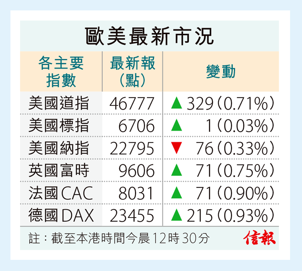 ... 演單日轉向,刺激美股道指周五踏入尾段升幅一度擴大至825點,高見46577點,三大指數齊漲超過1.6%。 甲骨 ...全文