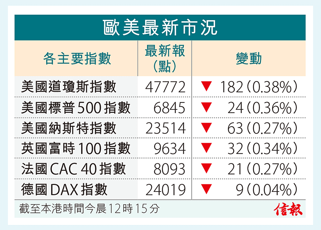 觀望聯儲局本周議息結果,美股周一缺乏明顯方向,道指高開16點後,轉跌最多343點,低見47611點,標指升0. ...全文