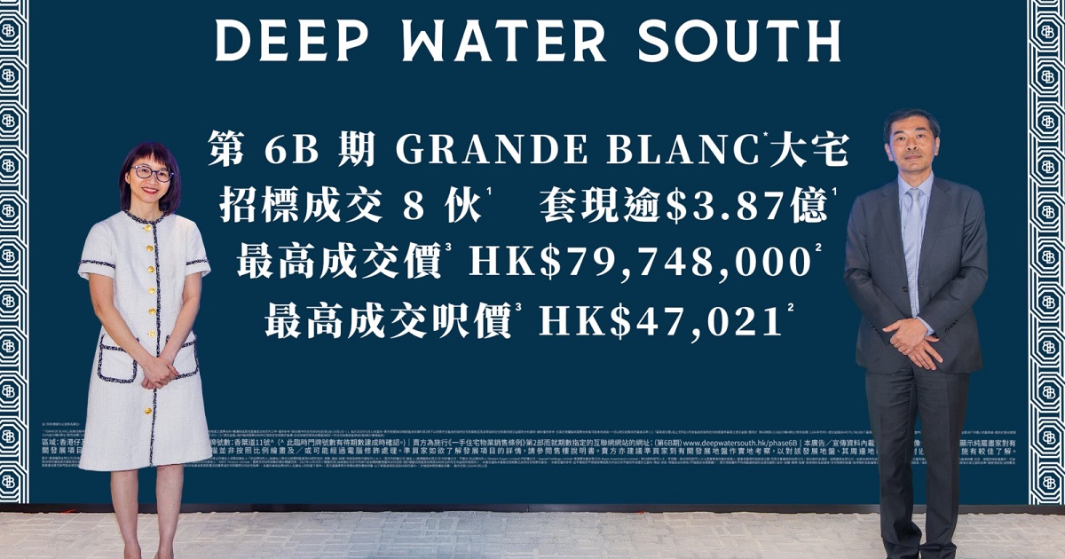 會德豐地產與港鐵(00066)合作的港島南岸第6B期DEEP WATER SOUTH,今日單日售出8伙大宅,套 ...全文