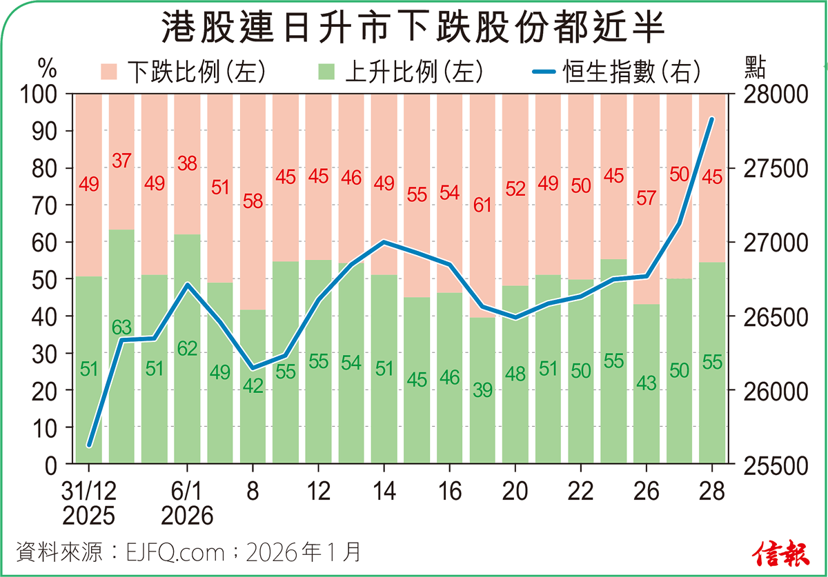 夜市期貨造好,截至晚上約10時51分,1月期指夜市最新報26852點,升206點或0.77%,高水222點,暫 ...全文