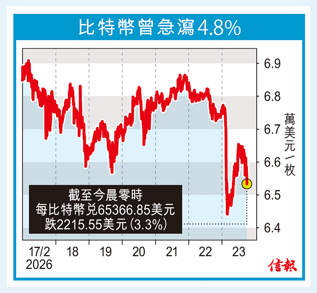 美國關稅再引發疑慮,加密貨幣「一哥」比特幣周一亞洲時段一度急瀉4.8%,失守6.5萬美元,低見64327美元, ...全文