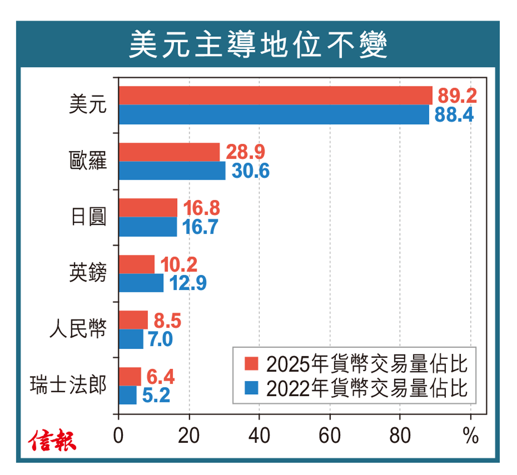 ... 22年的88.4%,人民幣比率由7%升上8.5%。 貿戰衝擊 環球成交額新高 其他貨幣方面,歐羅佔今年所有外 ...全文