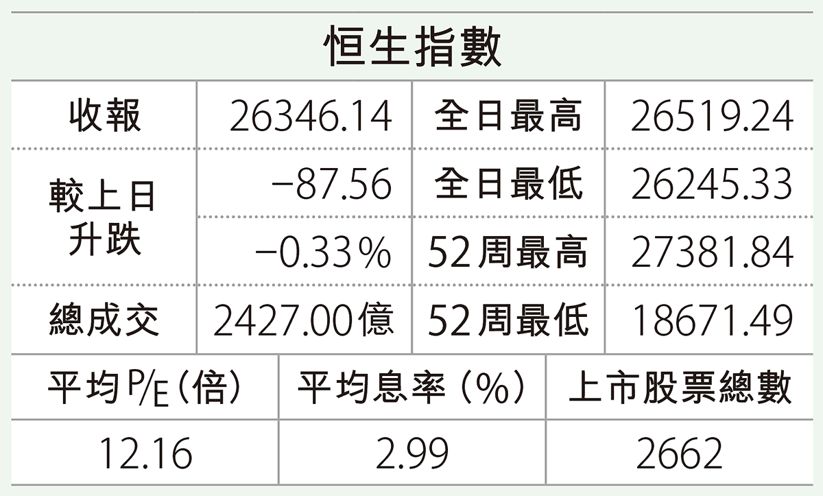 ... ,恒指昨天先升後回,收市跌87點,報26346點。科技股普遍有回吐壓力,恒生科指跌1.3%,連續兩日無法突破2 ...全文