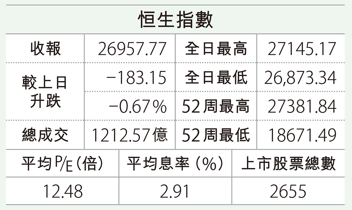... 0點,與今日日間期指收市26996點相比,下跌16點;最高則見27020點,與日間期指收市相比上升24點。 國 ...全文