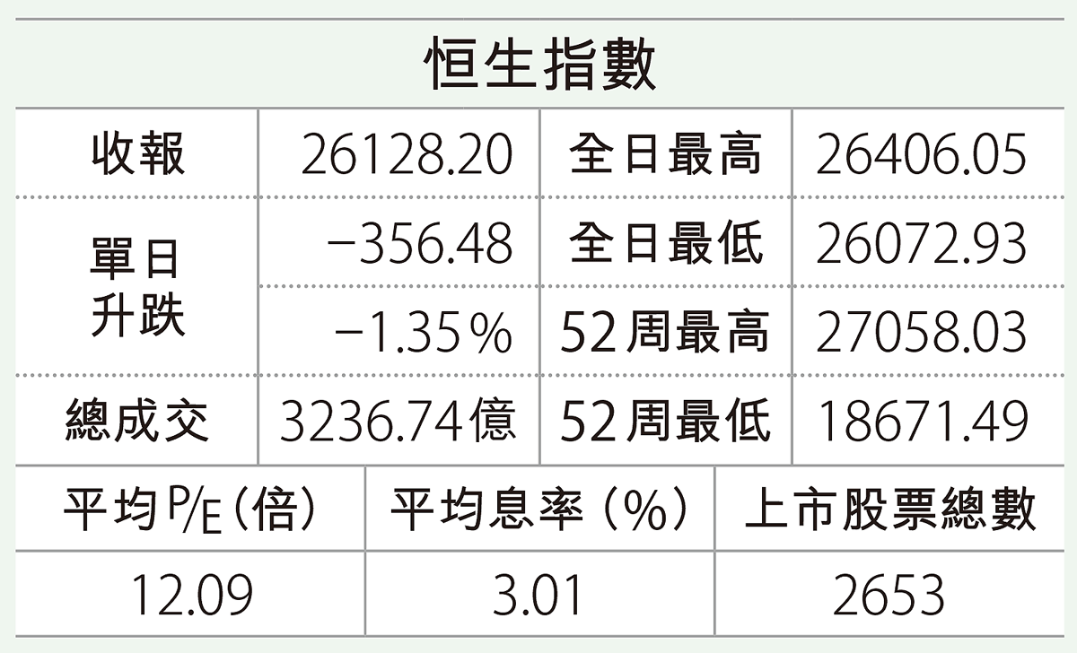 ... 1點,與今日日間期指收市26133點相比,下跌42點;最高則見26164點,與日間期指收市相比上升31點。 國 ...全文