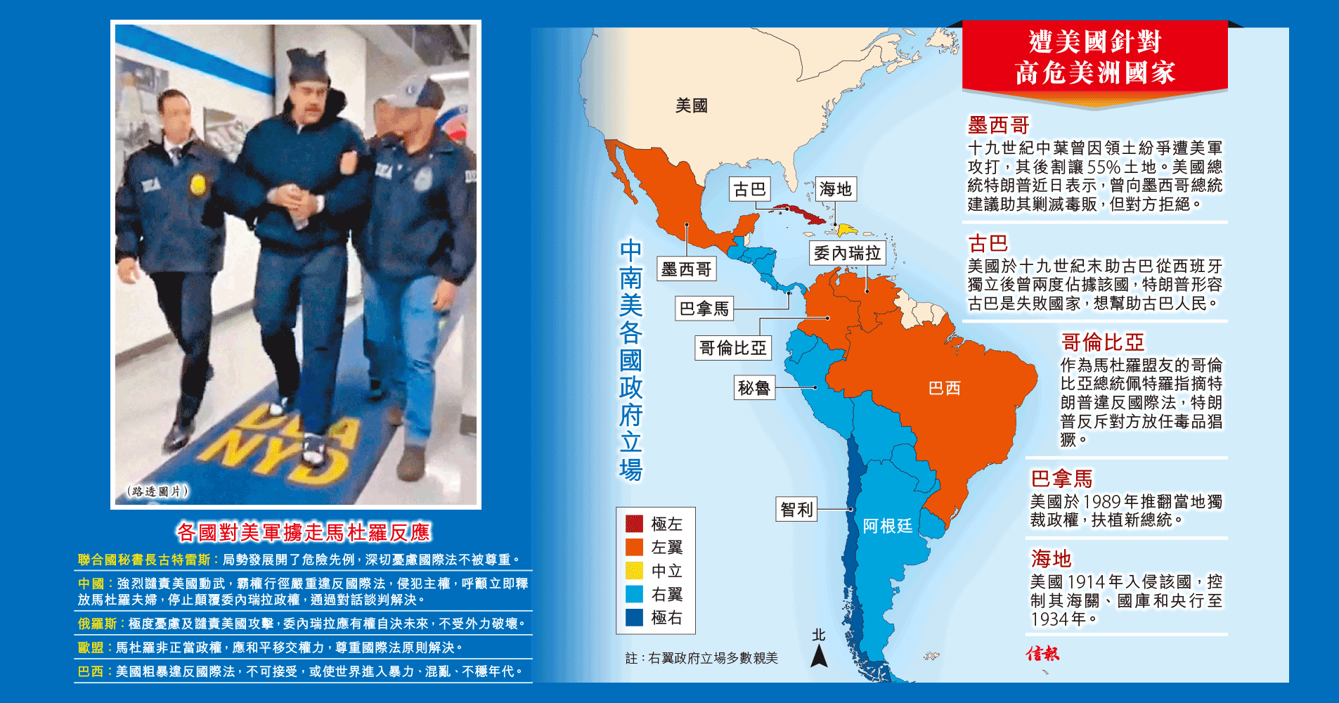 ... 西班牙等國齊聲譴責,美國則辯解為「執法行動」。分析認為這次將考驗中國外交手腕的極限,凝聚全球輿論反對美國行徑。 ...全文
