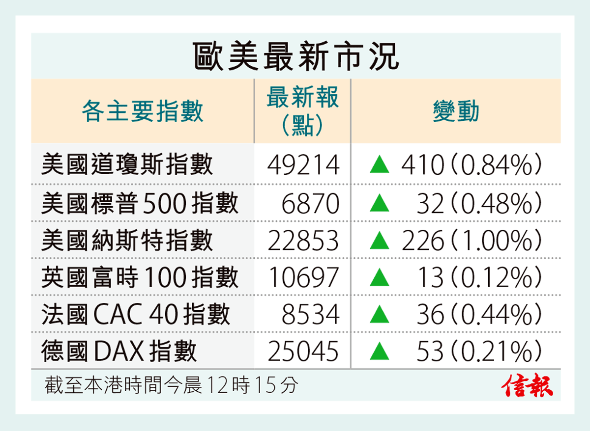 投資者聚焦美國總統特朗普稍後發表的國情諮文,道指升近300點。 截至本港時間晚上11時11分,道指報49095 ...全文