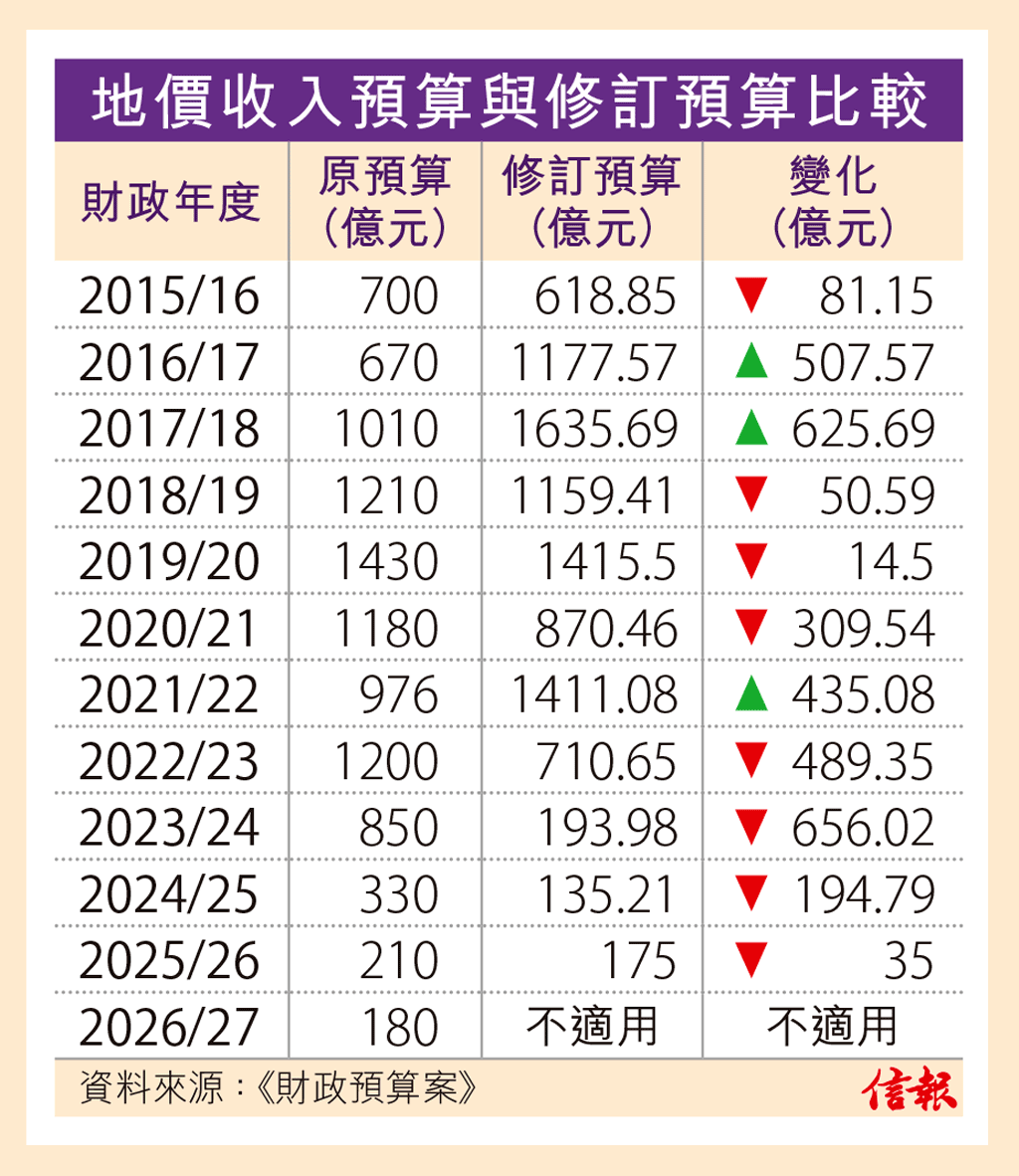 ... 仍未達去年2月《財政預算案》估算的210億元。政府昨天公布2025/26財政年度(本年度)的地價收入修訂預算, ...全文