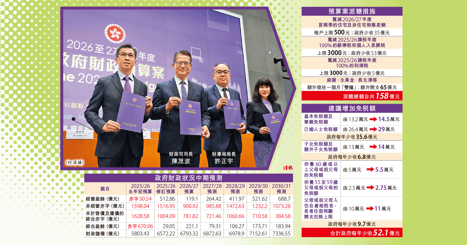 今日信報要聞2026—2027財政預算案——中產減負2026年02月26日