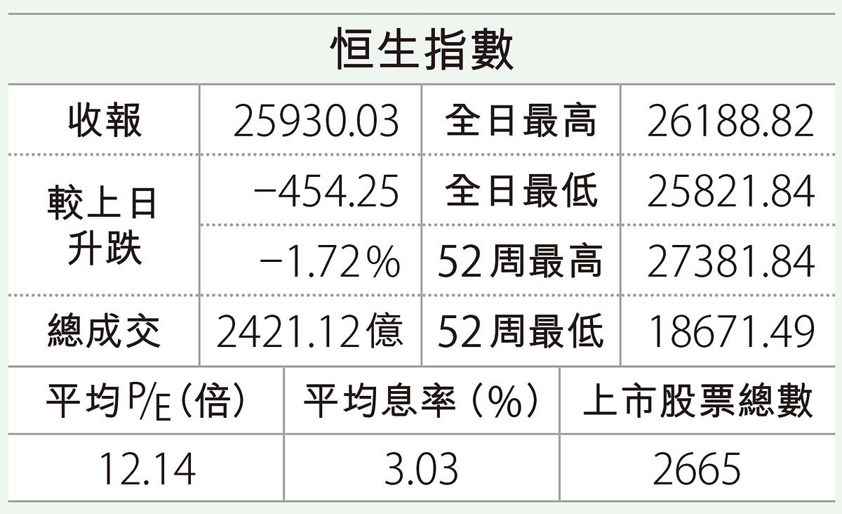 受美股大跌拖累,港股昨日插水,收報25930點,勁跌454點,10天、20天、50天線相繼失守,下兩個支持是1 ...全文