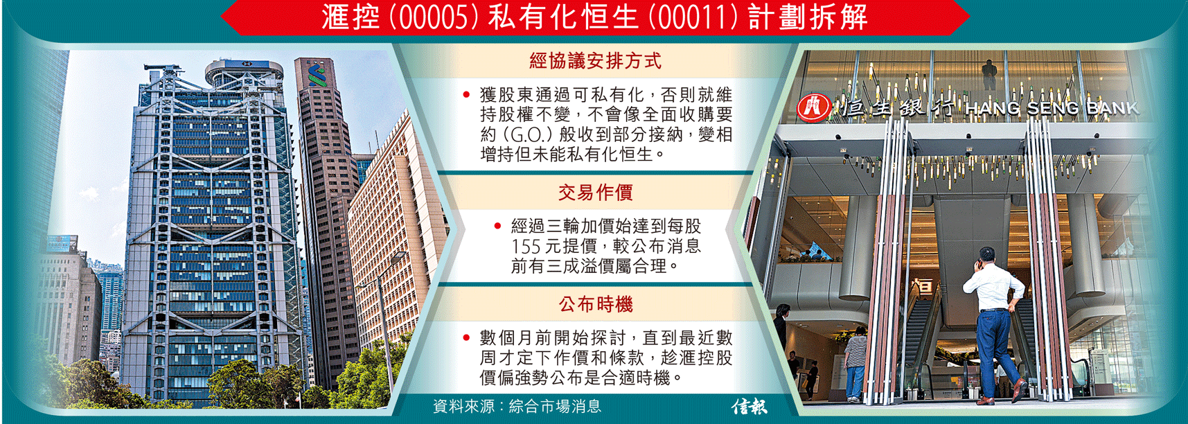 ... 控人士透露,由於恒生盈利表現欠佳,加上股價未有重大起色,滙控股價則接連破頂,「一個升、一個跌」的情況下,屬「提 ...全文