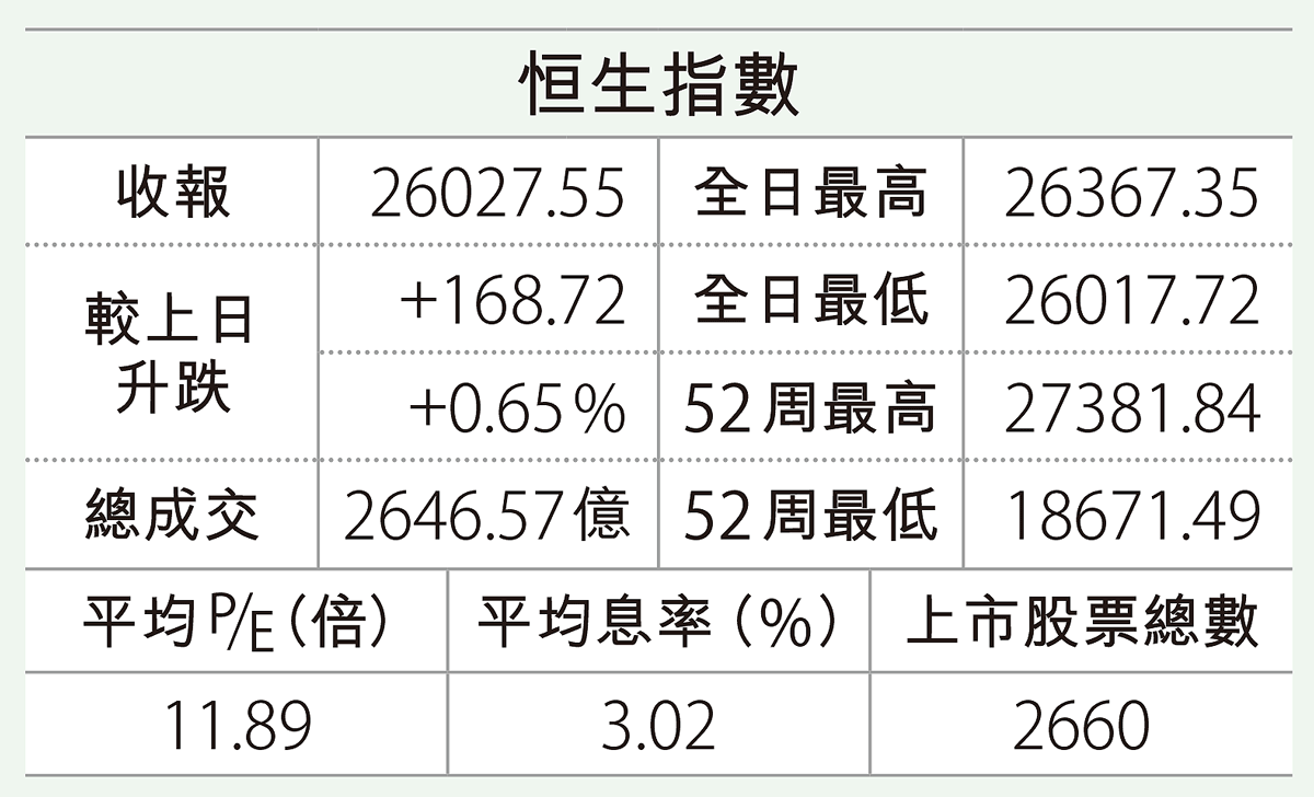 ... 全日低位26027點收市,僅漲168點,大市全日成交總額2646億元。 恒指日線圖雖有升幅,卻表現差勁,因剛觸 ...全文