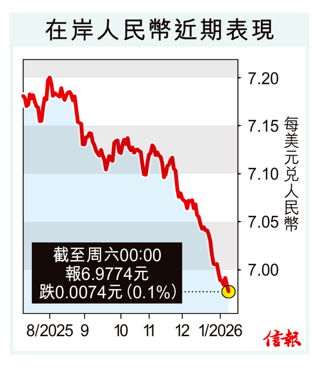 人民幣早前升破7算,摩根士丹利調升對人民幣目標的預測,最新預期在岸人民幣(CNY)兌美元將在第一季升值至6.8 ...全文