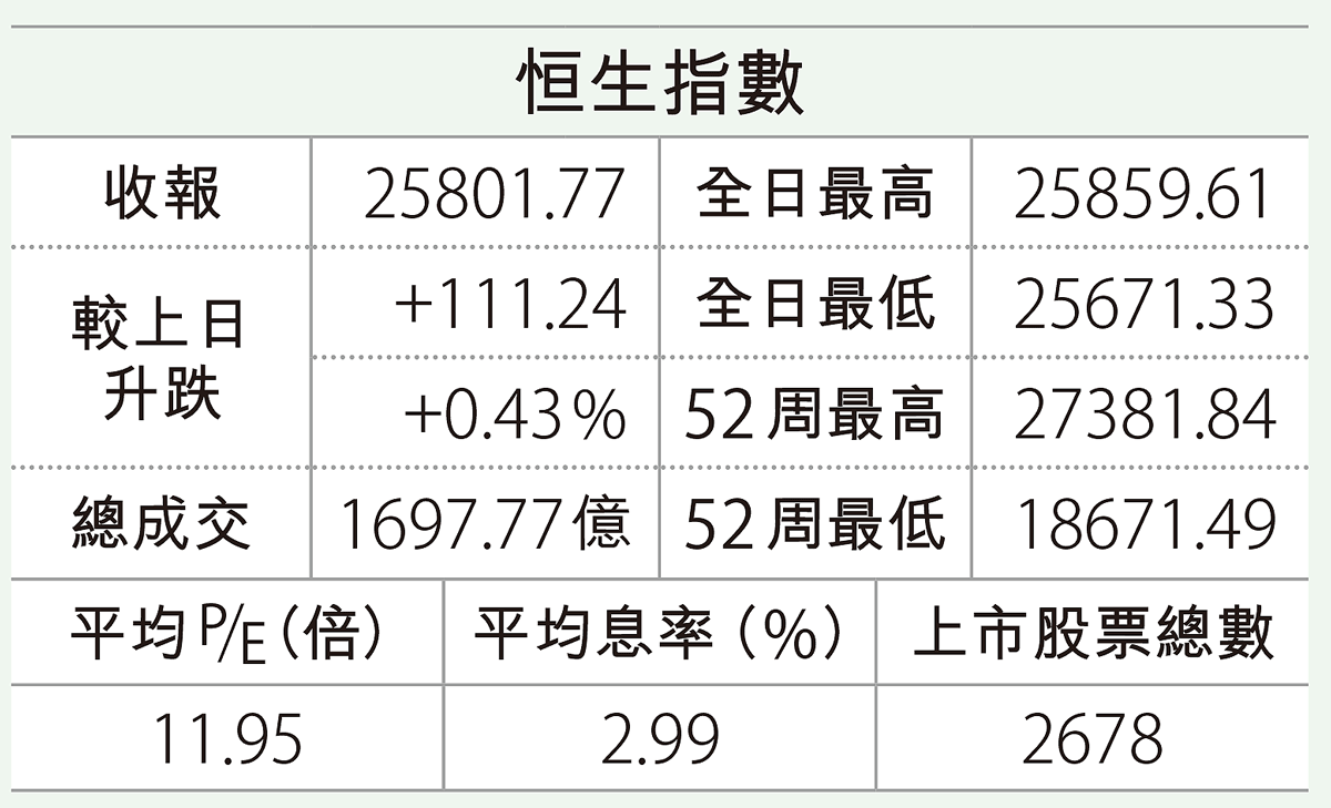 ... 8點,與今日日間期指收市25814點相比,下跌26點;最高則見25837點,與日間期指收市相比上升23點。 國 ...全文