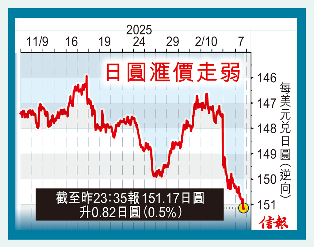 ... 就日圓滙率水平置評。日本央行加息預期降溫下,日圓兌每美元近期曾創8個月新低,周四報151.4,跌0.23%。 ...全文