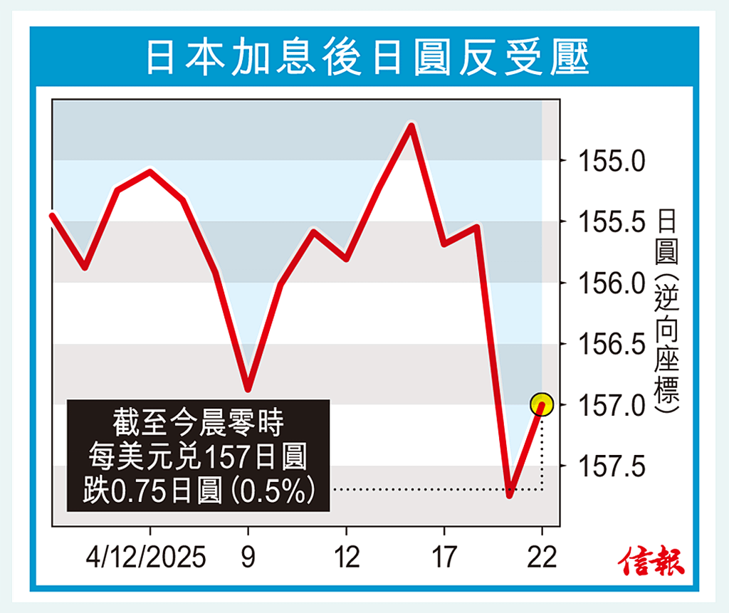 【日圓滙價/美元/日本央行/加息】日本央行上周五議息後,以全票通過決定加息0.25厘,利率上調至0.75厘,創 ...全文