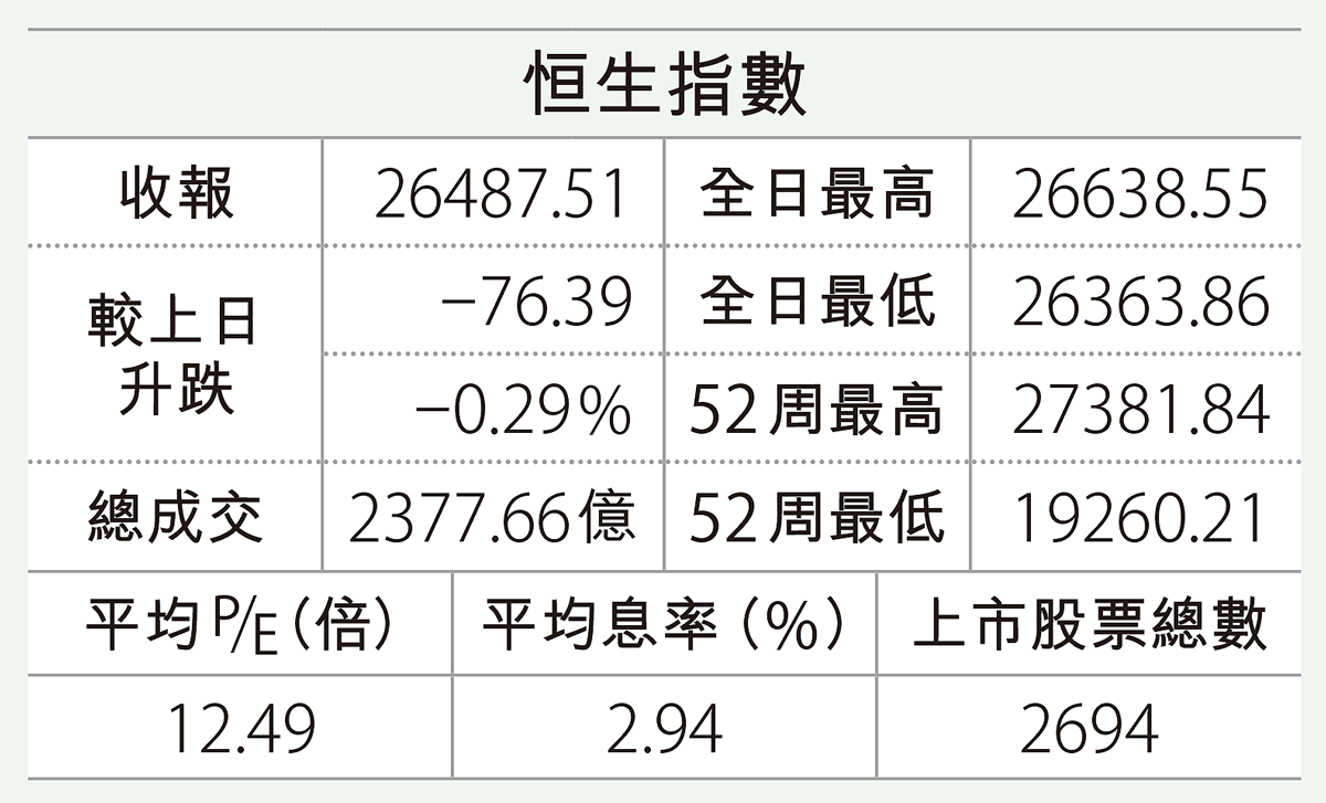 市場觀望美國與歐洲爆發的關稅戰,A股偏軟,港股弱勢延續,科技股領跌下,跌幅曾擴大至200點,其後雖一度回穩但未 ...全文