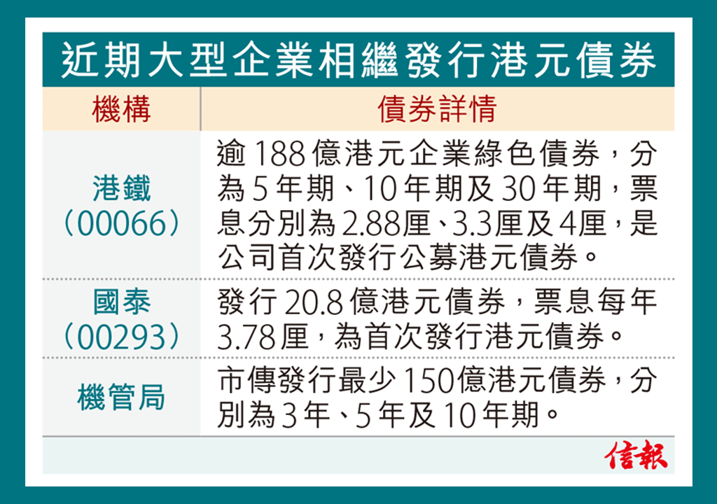 港鐵(00066)公開發行港元綠色債券融資188.88億元,港鐵昨天表示,這次是其首次發行公募港元債券,也是港 ...全文