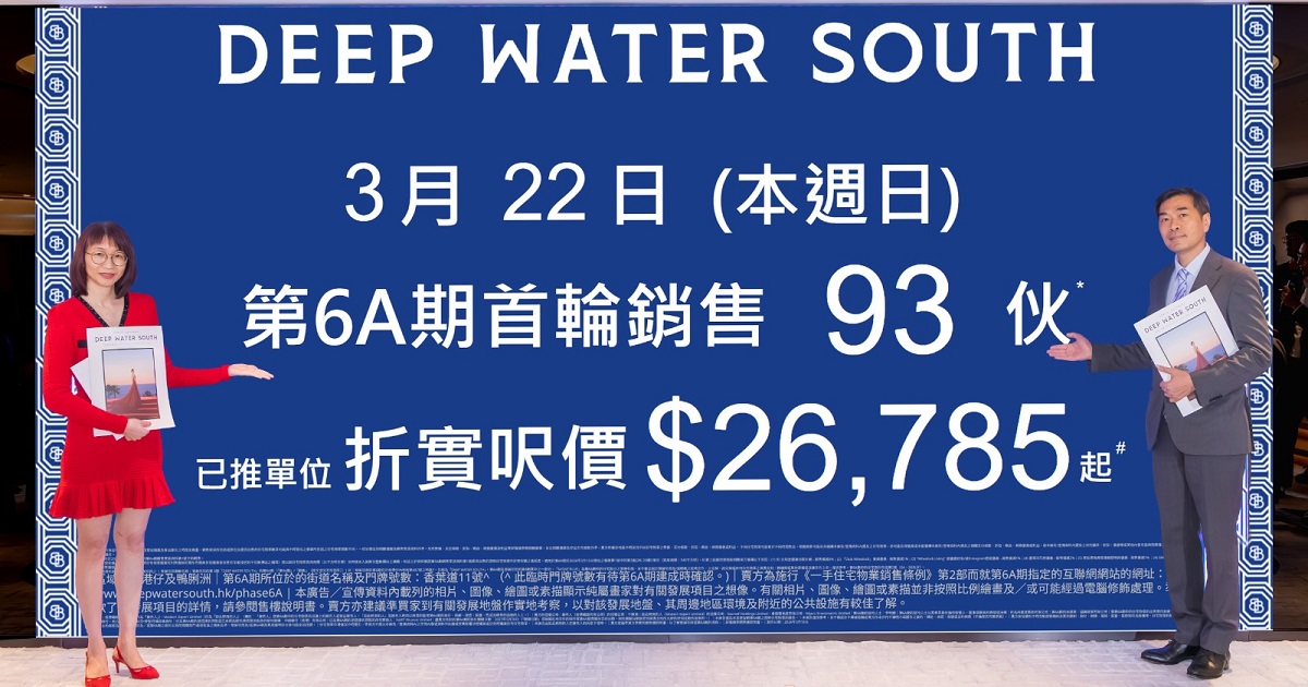 會德豐地產與港鐵(00066)合作的香港仔黃竹坑站港島南岸第6A期DEEP WATER SOUTH,推出銷售安 ...全文
