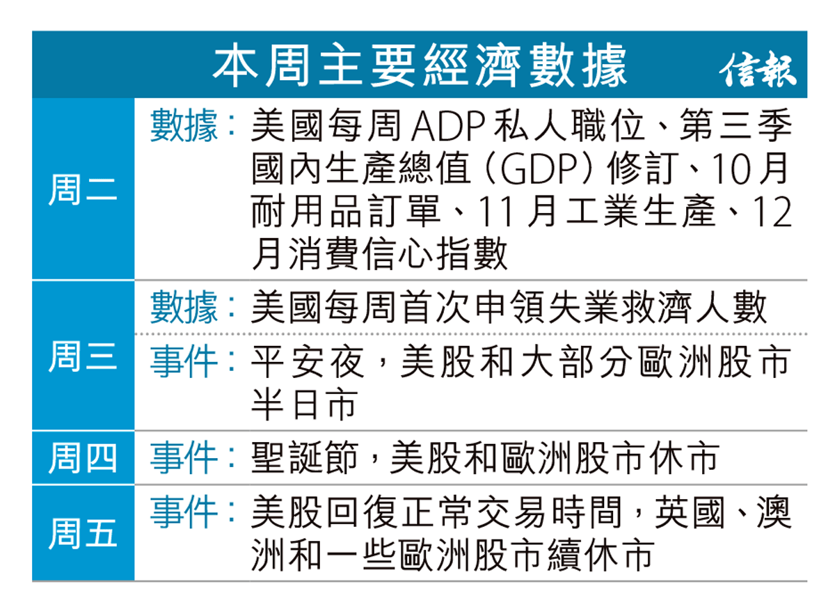 美股上周五高收,標指全周計微升0.1%。隨着聖誕節來臨,高盛和城堡證券看好美股在「聖誕老人升浪」(Santa ...全文