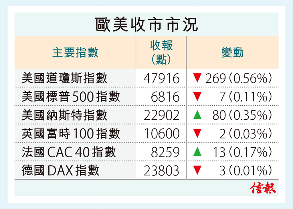 中東局勢仍然不明朗,道指跌逾100點。 截至本港時間晚上11時09分,道指報48060點,跌125點或0.26 ...全文