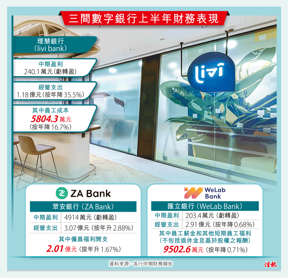本港數字銀行開業5年,今年終於有3間銀行中期業績虧轉盈,由中銀香港(02388)控股的理慧銀行(livi ba ...全文
