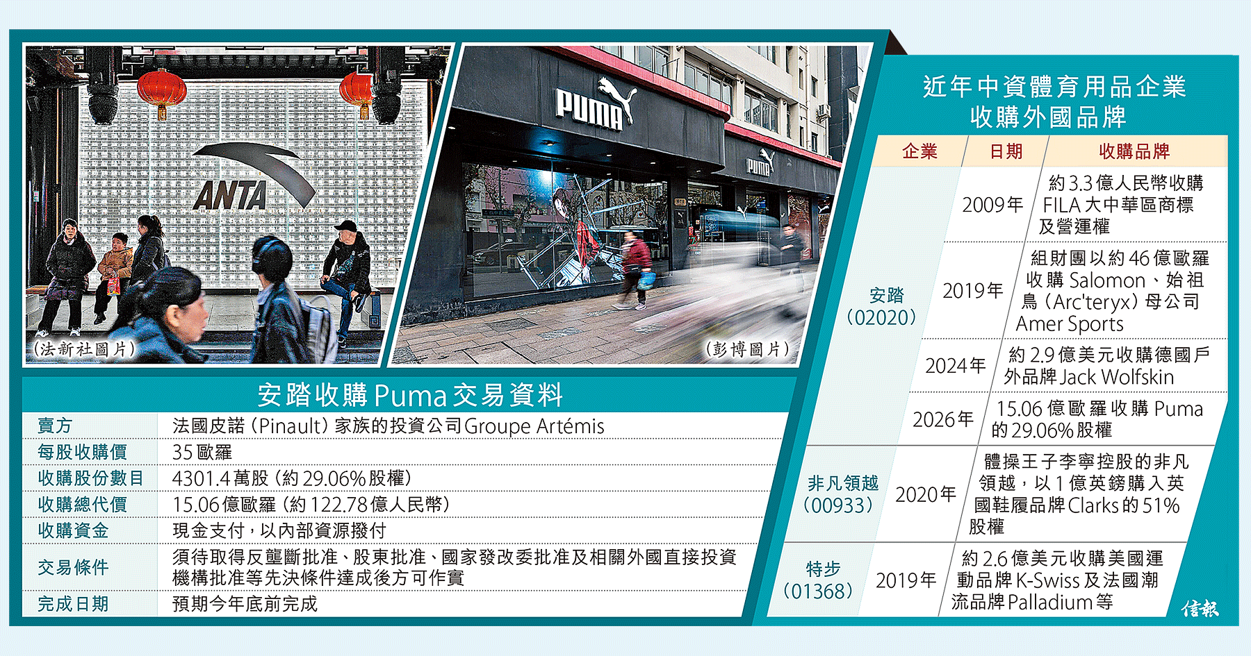 內地運動品牌安踏(02020)公布,與法國皮諾(Pinault)家族的投資公司Groupe Artémis達成 ...全文