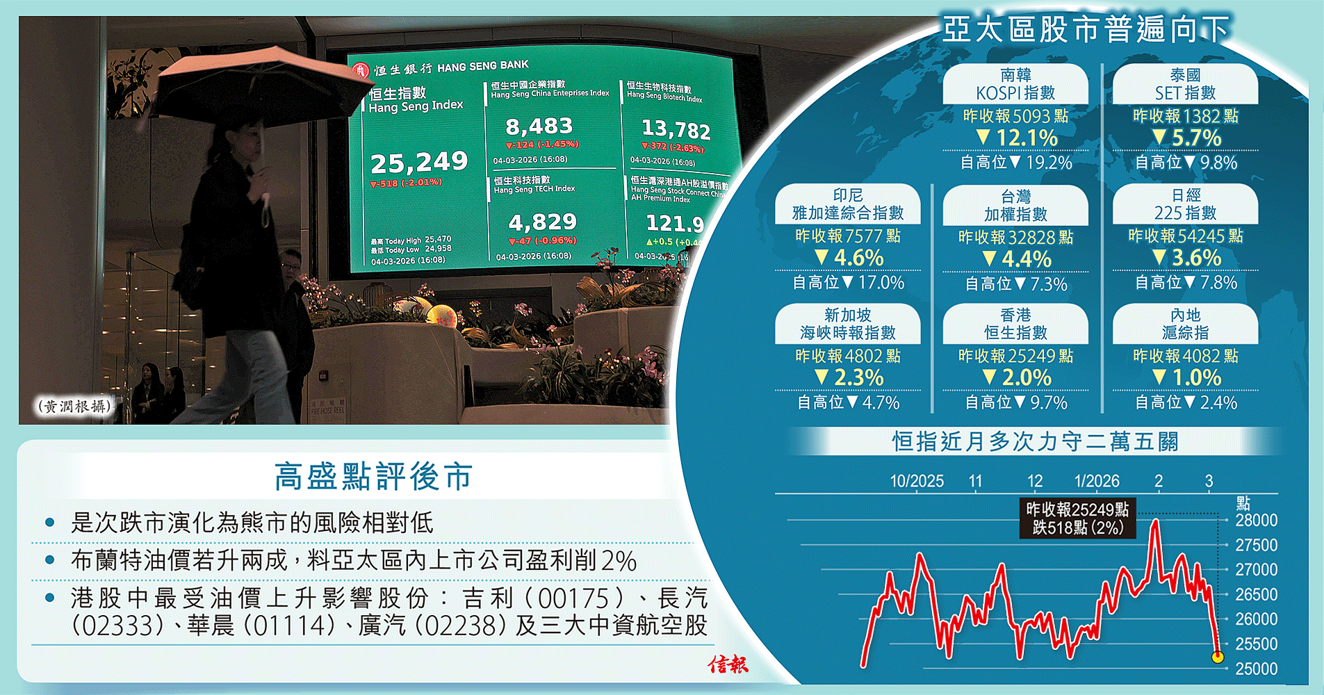 中東戰火繼續發揮殺傷力,恒指昨日一度暴瀉810點,跌至24958,收市反彈至25249,跌518點,總算返回橫 ...全文