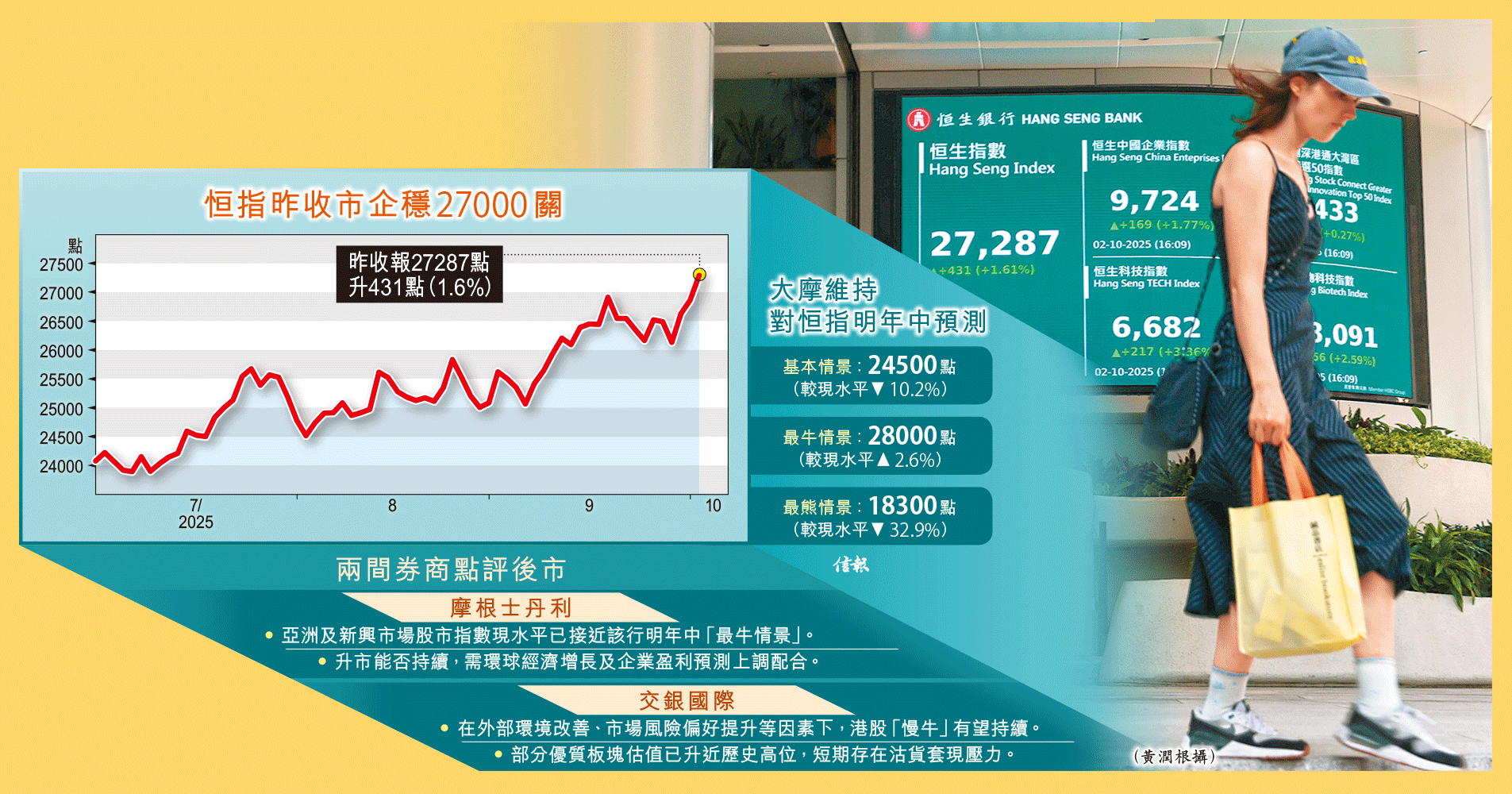 恒指10月開局即重上27000關,連升3個交易日累漲逾千點。中美元首將於4周後會面,消息利好港股,恒指昨在北水 ...全文